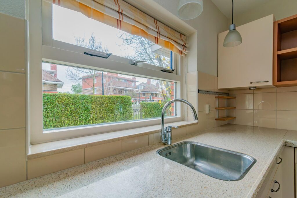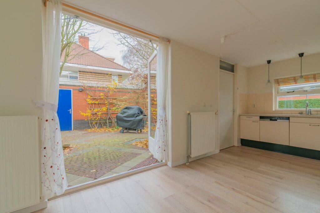Vanuit het keukenraam leuk wijds uitzicht op de grote groene zijtuin.