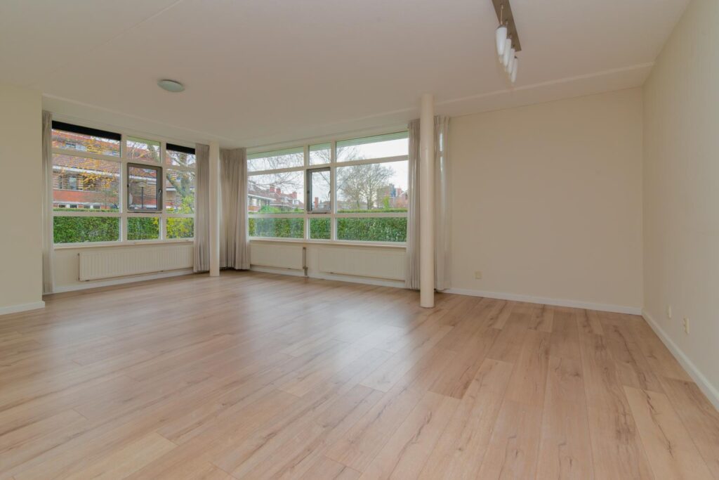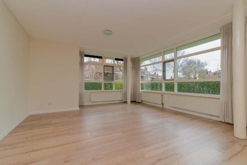 Achterkamer 3 ca. 3,10 x 3,45 met heerlijk vrij uitzicht op de diepe achtertuinen.