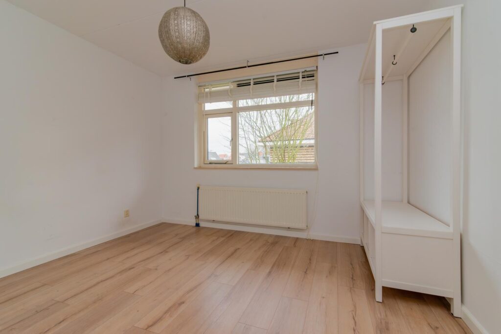 Lichte grote voorslaapkamer 1 ca. 3,65 x 3,15 met wijds uitzicht op groen speelveldje.
