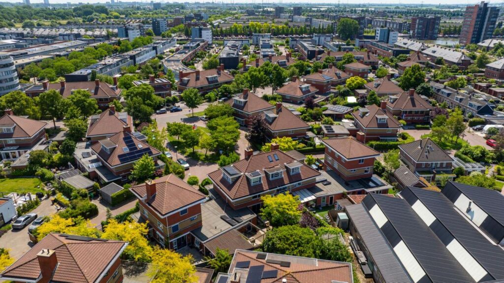VANUIT DE VOORZIJDE VAN DE WONING VRIJ UITZICHT OP HET GROENE PLANTSOEN.